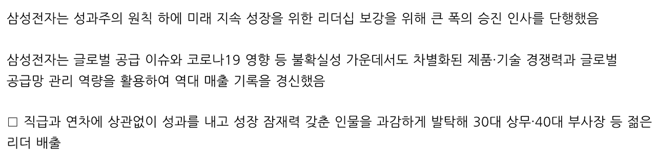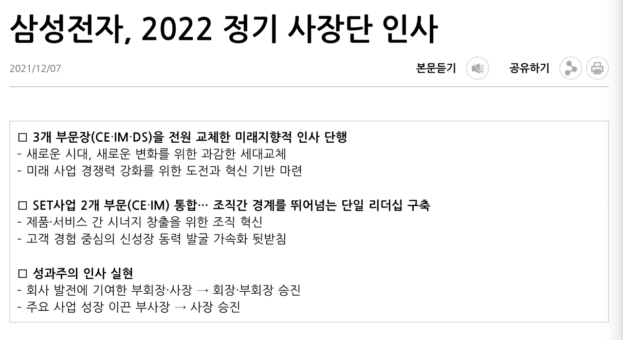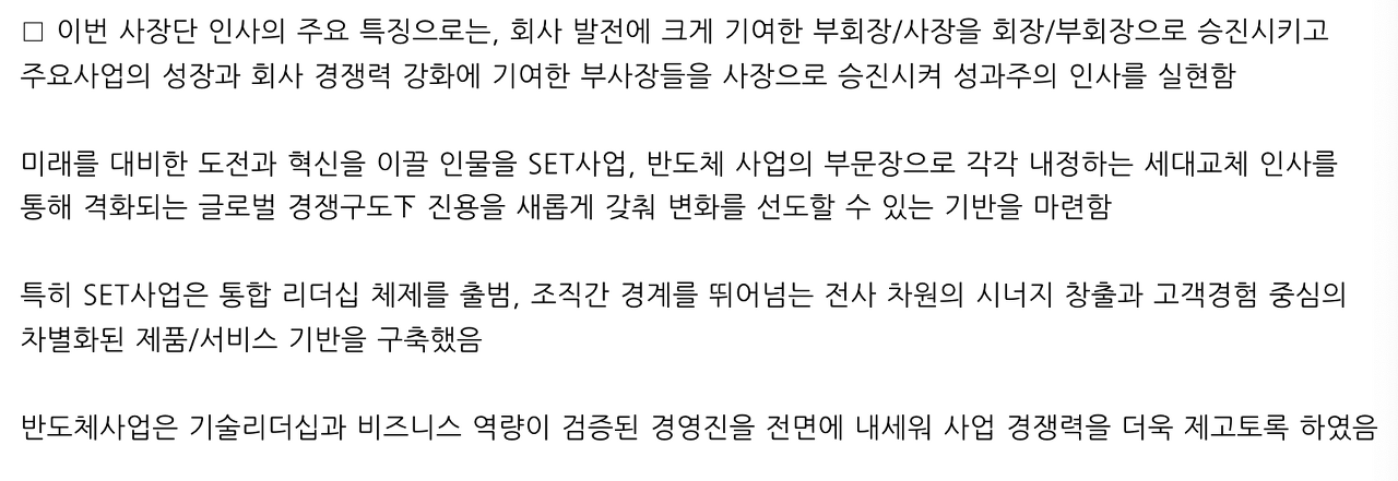 그리고, 임원 인사 내용을 자세히 들여다 보면서 삼성전자는 이런 임원이 이렇게 기여를 했다는 내용들을 보게 되는데요.
