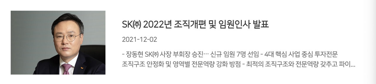 12월, 중요하게 보는 것 중 하나가 바로 그룹사 '인사', '조직 변경' 이런 내용들입니다.