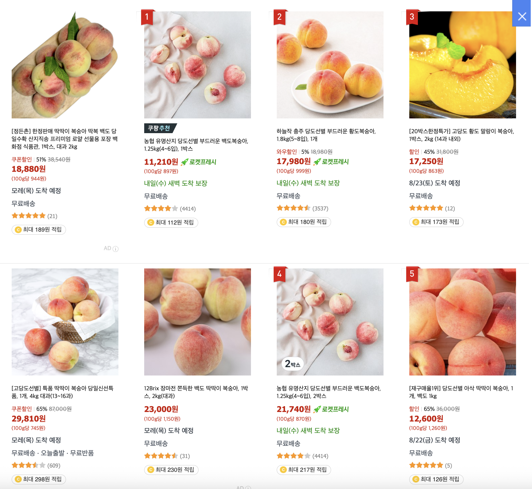 - 시중보다 저렴한 가격으로 복숭아 판매