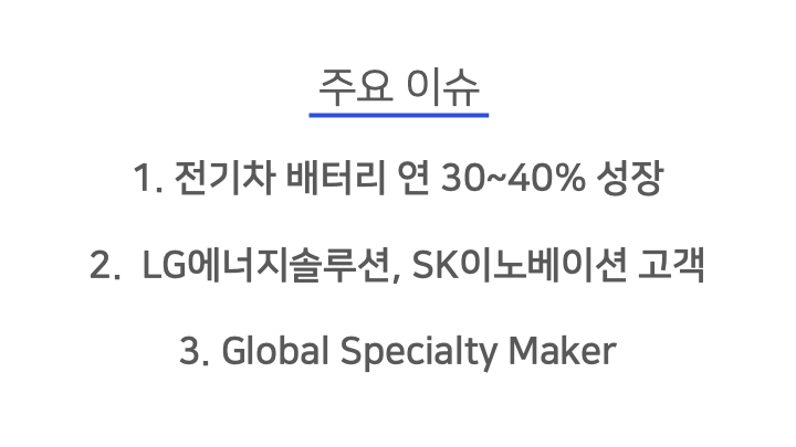 이번 시간에는 2차전지와 반도체에서 성장이 기대되는 글로벌 스페셜티 메이커 SKC를 알아봤습니다.