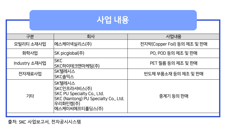 SKC는 배터리에 들어가는 동박을 제조하고 있고, 증설을 하고 있다.