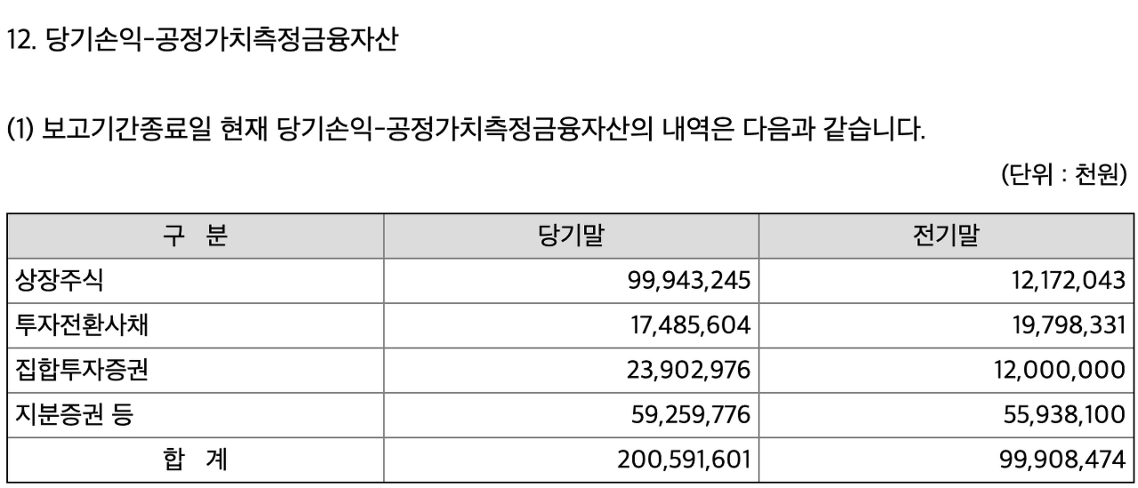 자세하게 공정가치 측정 금융자산 현황을 보면